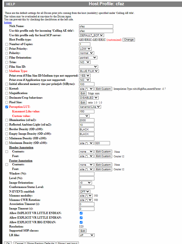 - Segue um modelo de perfil (Dicom profile editor) que peguei com padrão de uma impressora que estava funcionando.