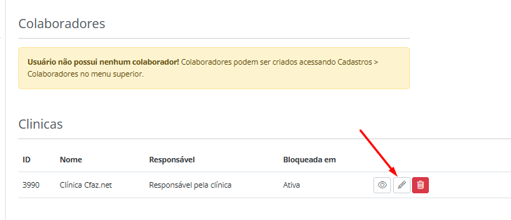 • Primeiro nosso time de suporte necessita localizar a clinica no sistema e clicar para editar a mesma e localizar o campo Dropbox.