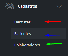 Os menus que possuem uma seta para baixo indicam que existem opções adicionais dentro daquele módulo.