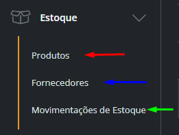 Neste menu estão disponíveis as ferramentas relacionadas ao controle de estoque da clínica.