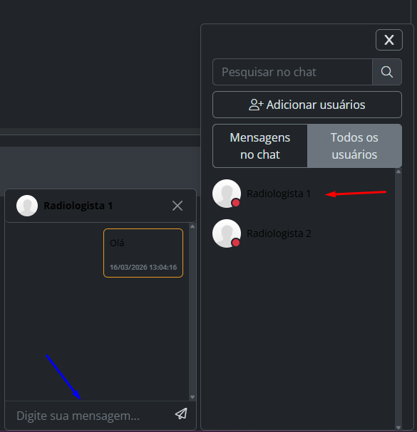 Neste menu está disponível o chat interno da clínica, utilizado para comunicação entre os colaboradores.