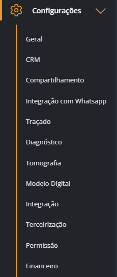 Neste menu estão disponíveis as configurações gerais do sistema.