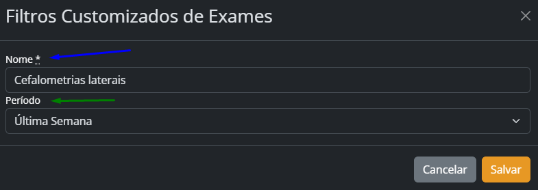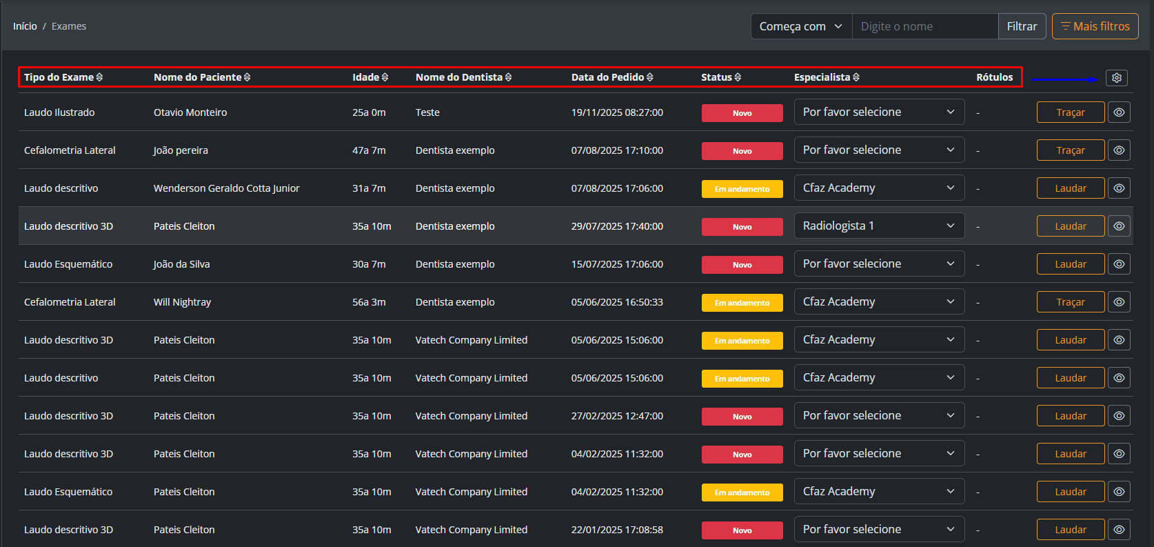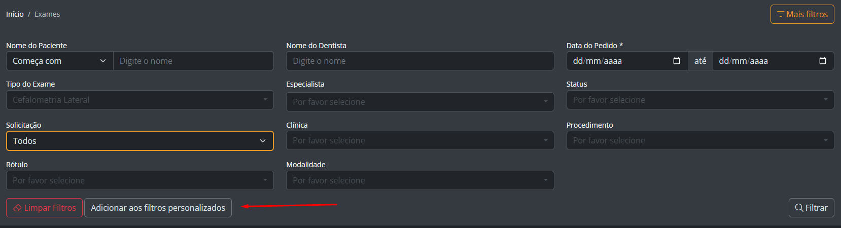 Para facilitar a localização de exames específicos, o sistema oferece filtros.